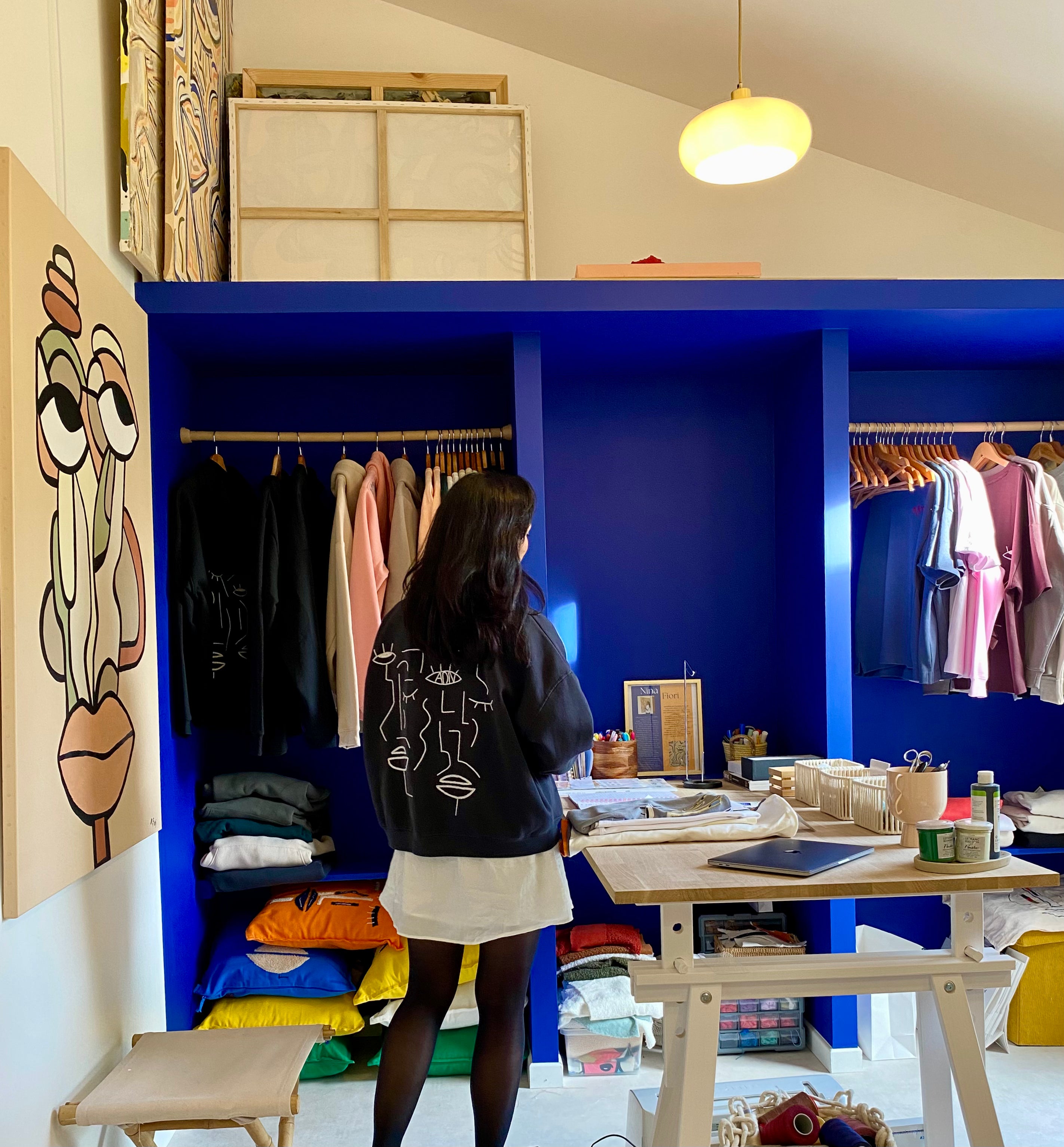 Je suis Nina Fiori, artiste peintre autodidacte et artiste textile. Sous le nom de L'ART DE NINA, je développe un univers abstrait, coloré et libre, mêlant peinture contemporaine et mode arty. Basée en Vendée, je crée au rythme de mes émotions, entre toiles uniques, pièces textiles originales et inspirations du quotidien.