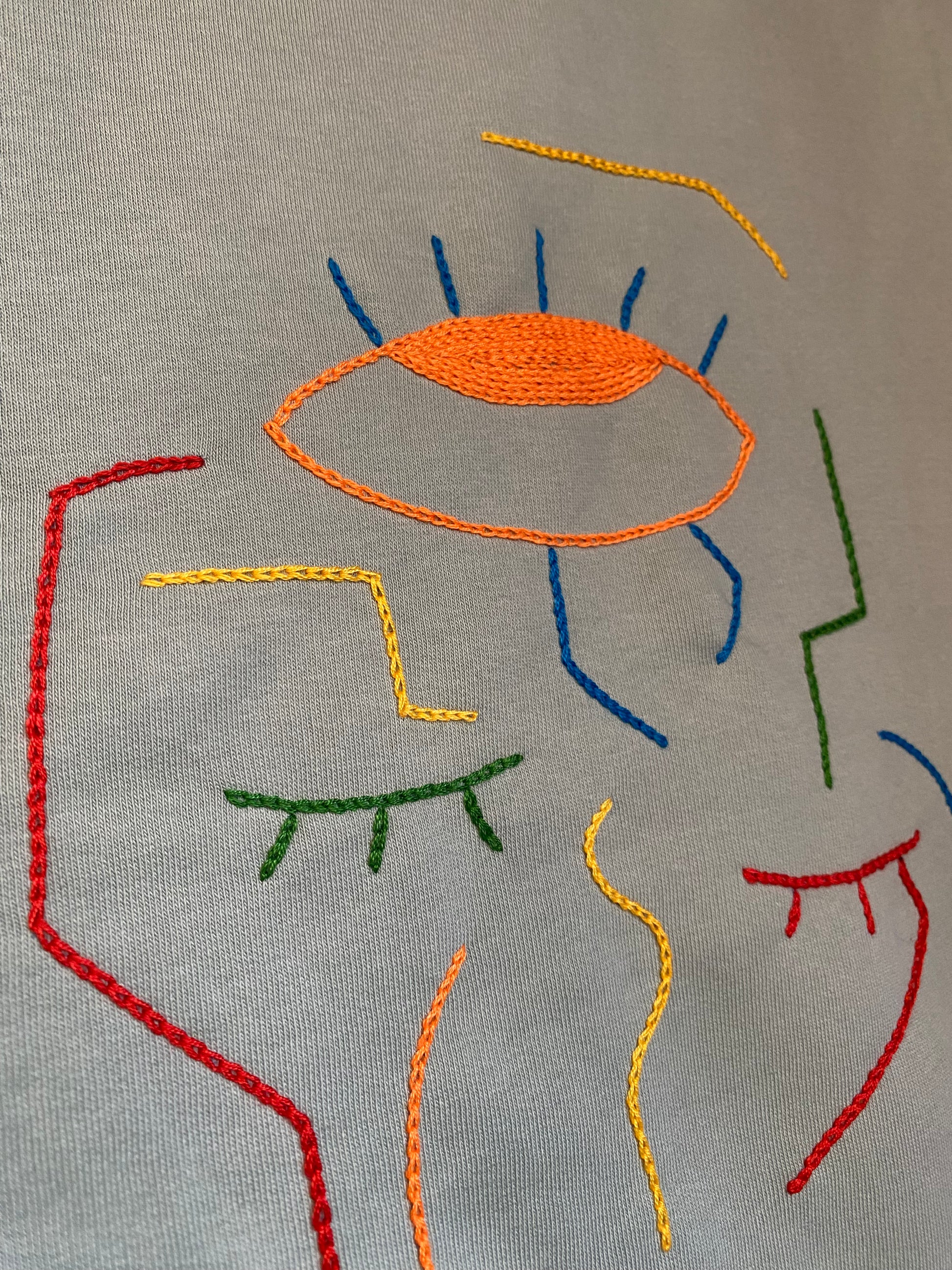 Sweat ado menthe brodé a la main au fil jaune/orange/bleu/rouge/vert